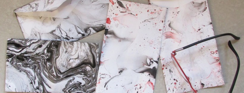 So we decided to spend the weekend Paper Marbling and it was so much fun! Just what the doctor prescribed… with all this constant change in the weather we have been falling quite ill. Fortunately for us, there is always something arty to do & crafty to learn while you recover.