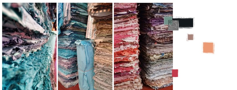 Walk in to gape at the massive antique wooden table right in the centre with all paper products on display – as if it were an island on its own; stacks of paper lined on the sides and graded by colour – as if gazing at a rainbow so near;  colonial architecture holding various exhibits of paper and paper products – as if to belong together; further in (by this time I have already decided my favourite spot) to the back and then to the corner is a dedicated section flaunting images of the craftsmen at the mill, their work in progress and a showcase of the different processes in the making of the paper – as if inside a museum making a connection felt through the story they are trying to tell —- Bombay Paperie – where paper is made without cutting trees and sold planting just love.
